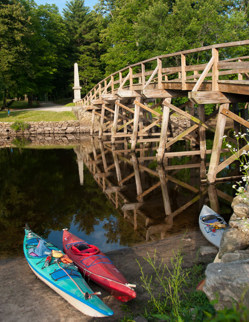 Summer Kayaks at the North Bridge in Lexington, MA - Photo Credit Greater Merrimack Valley